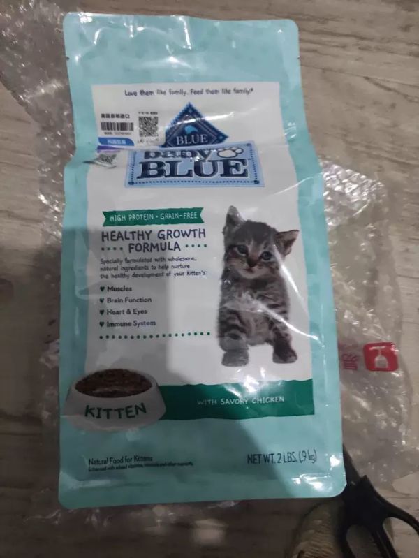 家里猫粮快吃完了,我就在各种商家群里看有木有优惠活动,正好看到了蓝爵幼猫粮有活动,买一送一,留了地址和身份证号就付钱了。两袋猫粮是分开发货的,收到的是两个箱子一前一后,就是效期好的包装还不如效期差的,其实是过了最佳有效期,另一袋我是准备喂流浪猫的。只要天气不热过期一两个月都是可以喂的,只是个人想法哈。毕竟一袋也就5.4千克,大概喂两周就没了。蓝色的包装袋和名字很相配——蓝爵幼猫粮。拍照开袋的时候大橘子又是第一个冲上来要吃的。一过来就开炫,根本拦不住,适口性很不错,家里两只猫都喜欢吃。这款猫粮和其他猫粮不同的是,里面还有小黑颗,据说是核心配方,将富含抗氧化功能的食材与丰富维生素特制而成的。这款猫粮是无谷的且首位为去骨鸡肉,粗蛋白质含有40%,营养高,软便克星,就算家里有点挑嘴的二橘也爱吃。对于大便的气味这个我觉得都差不多,没闻出有啥区别,也可能是我习惯了。家里有小猫的,推荐试试这款猫粮。一定会让你家猫仔长的很壮,不挑食。