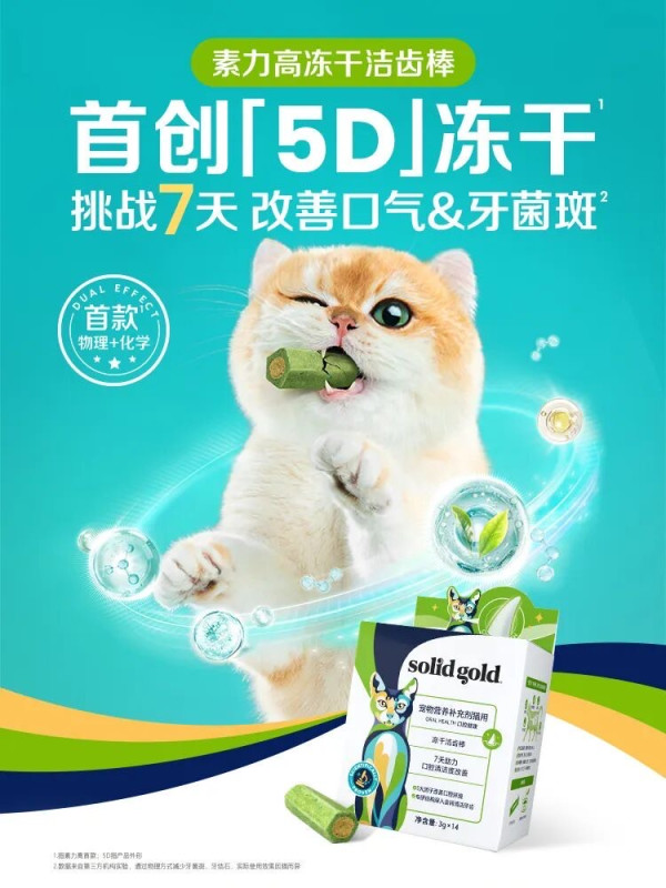 #新年健康养宠 #宠物口腔护理新突破 #冻干洁齿棒科学护牙 #7天改善宠物口气问题 #物理化学双重洁齿方案 很多铲屎官来说,给猫咪做口腔护理堪称 “年度难题”—— 拿着牙刷追得满屋跑,好不容易按住猫咪,它却弓背哈气、拼命挣扎,洁齿水倒进粮碗就被嫌弃地绕开,指套擦牙更是分分钟引发 “人猫大战”。而更让人焦虑的是,猫咪的口腔问题远比想象中危险:英国皇家兽医学院研究显示,牙周病以 15.2% 的记录率成为猫咪最常见疾病,不仅会导致口臭、食欲不振,严重时还会引发牙齿脱落,甚至增加 1.8 倍心脏节律异常、耳部感染的风险。随着科学养宠理念深入人心,宠物口腔护理市场也迎来爆发。据 Verified Market Reports 数据,2024 年全球宠物口腔护理产品与服务市场规模已达 51.2 亿美元,预计到 2033 年将飙升至 98.3 亿美元,复合年增长率 7.8%。但市面上多数产品要么效果微弱,要么适口性差,始终难以平衡 “有效” 与 “省心”。直到健合集团旗下高端猫咪营养品牌 Solid Gold 素力高,带着首款冻干洁齿棒重磅登场,才真正打破了这一僵局。从 “被动清洁” 到 “主动护齿”,这款洁齿棒藏着双效巧思作为深耕宠物营养领域 50 余年的品牌,素力高此前已在肠道健康、皮毛护理、免疫提升三大核心赛道树立标杆。此次切入口腔健康领域,更是拿出了 “物理 + 化学” 双管齐下的创新方案 —— 像为猫咪定制了 “可食用的牙刷 + 牙膏组合”,既解决清洁效率,又攻克适口性难关。在物理清洁层面,素力高首创 “5D 冻干结构”,每一根洁齿棒都精准贴合猫咪尖牙的弧度,能深入平时难以触及的齿缝。同时,3cm 的定制长度并非随意设计:经过实测,这个长度能让猫咪在啃咬时自然延长摩擦时间,实现 “每咬一口,相当于 1 分钟有效洁齿”,从根源减少食物残渣堆积。化学护齿则靠 “七重有效成分” 构建防护网:茶多酚与柿子粉组成 “口气突击手”,咬碎瞬间就能中和异味;溶菌酶与葡萄糖酸锌像 “菌膜爆破手”,深入牙龈沟抑制有害菌繁殖;褐藻粉化身 “防御增强剂”,减少牙菌斑附着;而益生元与后生元则从肠道入手,通过调节消化道微生态,间接改善由内而发的口腔问题 —— 相当于给猫咪的口腔上了 “内外双保险”。更让铲屎官惊喜的是,这款洁齿棒以鸡肉冻干为基底,素力高内部测试显示,超过 95% 的猫咪会主动凑上来啃咬,彻底告别传统洁齿产品 “强迫式护理” 的尴尬。从此,给猫咪洁齿不再是 “人猫对抗”,而是让猫咪在享受零食的同时,悄悄完成口腔养护。用科研说话:数据见证 “7 天改善,4 周蜕变”素力高始终以 “科学实证” 为核心竞争力,这款冻干洁齿棒的功效并非空谈。新品发布时,品牌联合第三方机构公布的猫咪牙菌斑实验报告,用硬数据打消了铲屎官的顾虑:7 天初见成效:持续喂食后,猫咪的口臭明显减轻,牙齿表面的牙菌斑开始减少,凑近互动时再也没有刺鼻异味;4 周深度改善:口臭情况减少 75.78%,牙菌斑去除率达 50.00%,牙结石沉积量也降低 35.71%,牙齿重新恢复洁净光泽,猫咪啃咬猫粮时的疼痛感明显缓解,食欲也随之提升。这份报告背后,是素力高对科研的深耕:品牌不仅与中国农业大学、浙江大学、华南农业大学等顶尖高校建立 “产学研” 合作,还联合全球权威科研机构搭建验证体系,从配方研发到效果测试,每一步都严格遵循科学标准。此前,素力高还携手京东宠物、中国兽医协会及热心肠研究院,发布了中国首份《2025 猫咪肠胃健康养护指南》,用专业内容帮助铲屎官建立科学认知 —— 这份对 “实证” 的坚持,正是其产品力的核心壁垒。全维布局口腔赛道,素力高引领精细化养宠新趋势随着冻干洁齿棒在天猫、京东、抖音三大核心平台同步上线,素力高正式完成了从 “肠道、皮毛、免疫” 到 “口腔健康” 的全营养矩阵布局。对铲屎官而言,这意味着无需再为猫咪的不同健康需求筛选多个品牌,一个素力高就能覆盖从内到外的养护需求;对行业而言,这款产品则为宠物口腔护理树立了 “科学有效 + 适口性佳” 的新标准,推动行业从 “粗放型产品” 向 “精细化解决方案” 升级。未来,素力高将继续秉承健合集团 “Premium(高端优质)、Proven(科学验证)、Aspirational(追求卓越)、Engaging(参与互动)” 的 PPAE 经营模式,在宠物营养的细分赛道持续深耕。或许用不了多久,“给猫咪洁齿” 将不再是铲屎官的烦恼,而是像喂零食一样轻松 —— 毕竟对毛孩子来说,最好的养护,从来都是 “既健康,又喜欢”。