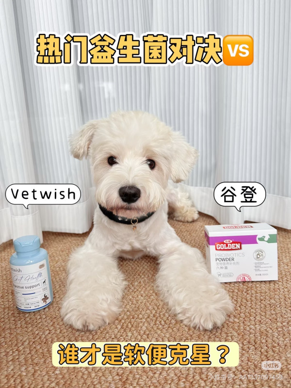 #晒双11养宠好物 养十七这只雪纳瑞后,益生菌就没断过!这次把前两天入手的谷登六种菌和唯特适拉出来对比,两款各有亮点,玻璃胃家长可以按需选~先看谷登六种菌!它是袋装的,每袋含180亿cfu高活性菌,足足6种菌群搭配益生元,像十七换粮时偶尔的轻微软便,拌在狗粮里吃两天就能好转。而且有南农大实验背书,能调节肠道菌群,平时给它做日常保健,减半用量就很方便,适口性很好,狗狗会直接舔,适合需要全面调理肠胃的小狗。再说说Vetwish益生菌!胶囊设计,4种菌株,可以倒出来拌饭,如果不吃可以强硬一点直接塞给十七,仅作参考,每克含140亿cfu真活菌,有时候狗狗食欲不好消化不好我就会喂点。狗狗肠胃不好益生菌真的要必备,🧑⚕也说了预防大于治疗!