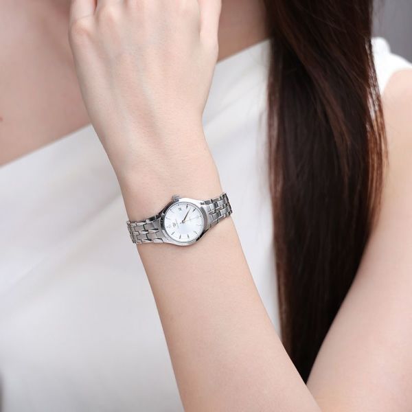 #双11「衣」劳永逸指南 双11挑商务休闲腕表,天王3626款直接戳中我!28毫米内的小表盘超衬女生纤细手腕,不锈钢表带经过精细打磨,戴起来贴合舒适,折叠扣设计取戴也方便。 白色表盘搭配简约指针,低调又显气质,人工蓝宝石玻璃表镜耐磨防刮,日常使用不用小心翼翼。最实用的是带日历功能,通勤看日期超省心,30米生活防水也能应对日常溅水。 不管搭西装还是连衣裙都适配,官方正品有保障。双11价格划算,想入一块兼顾颜值与实用的百搭腕表,这款闭眼冲不亏!