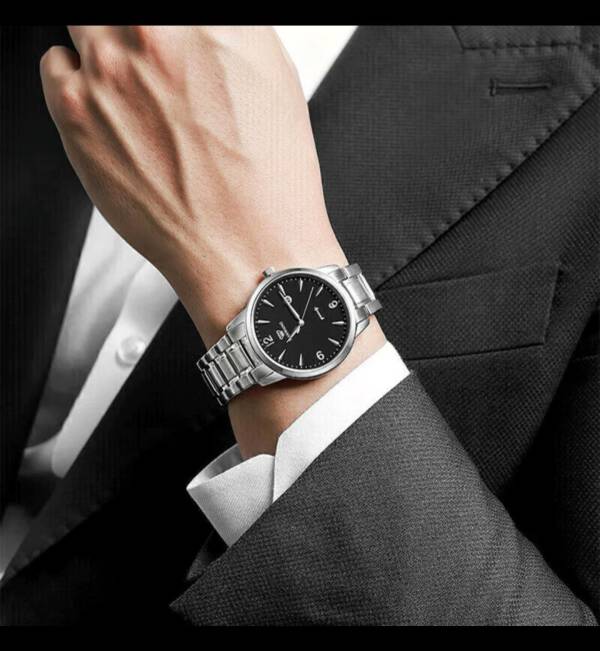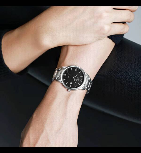 #双11「衣」劳永逸指南 双十一想入手一款提升格调的男表,天王沧海系列绝对值得考虑!它采用简约大气的设计风格,精钢表带质感十足,坚固耐用且光泽亮丽,彰显出男士的硬朗与力量。黑色表盘沉稳深邃,搭配清晰的刻度和指针,读时一目了然,尽显低调奢华。穿搭上,商务场合中,搭配一套深色西装,天王沧海表能成为点睛之笔,凸显专业与稳重;休闲时光,配上简约的T恤和牛仔裤,它又能为整体造型增添几分精致感。这款表不仅实用,更是身份与品味的象征。趁着双11优惠,赶紧为自己或心爱的他选购一块,让每一次抬手都尽显自信风采!