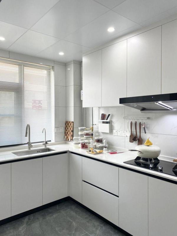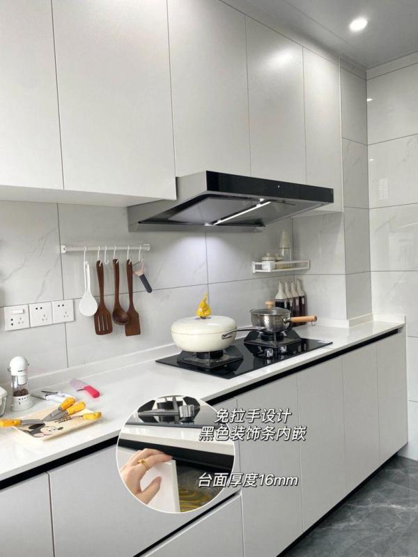 #双12囤货指南 闭眼入不踩坑 #装修!我有话说 #家居好物推荐 #家装经验谈 忙完手头上的事情,来分享家里的奶白色小厨房~奶fufu的厨房,干净又整洁,在这样的厨房做饭,心情都会好,让人爱上了下厨啦!1、奶白色厨房设计橱柜板材用的是和全屋衣柜一样的颜色,珍珠白~颜色一样看起来更协调,由于地砖颜色较深,首先考虑的就是白色系。台面用的是石英石,纯白色、厚度16mm。它是我拿着橱柜料头一家一家对比选的,自装的路真的非常艰辛。大部分厨房用具,也选的白色系,例如白色置物架、锅具、厨具等等,整体搭配起来更好。2、厨房面积厨房长3米、宽2米,实际面积6平方左右,虽然面积比较小,但只要设计好,收纳合理,空间是完全够用的。3、厨房布局厨房设计的是L型,因为不想挡门,就把冰箱移了出去。由于窗台高度的缘故,没有做高低台,也是一个小遗憾,有条件的还是建议做。台面高度85cm,因为是男生做饭,根据他的身高设计。按照洗-切-炒的顺序,分为水槽区-备菜区-烹饪区,真的是越用越顺手。近期跟风入了颜值高的奶白色厨房好物,迫不及待分享给你们。雪平锅:家里就2个人吃饭,小锅做2-3个人的饭刚好,非常方便。真空保鲜盒:这套是为屯粮准备的,可以抽真空,让保鲜时间更长。真空泵一键抽气,放了好几天的水果还是很新鲜,用起来很方便。棋盘格菜板:冲这颜值都很难不爱了吧!磁吸剪刀:剪开骨头非常方便,对一个没有力气的女生来说使用起来很轻松!