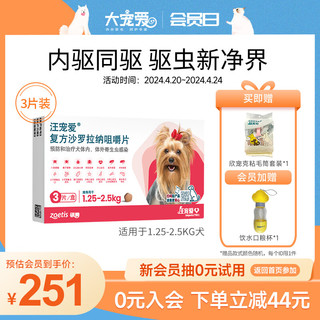 汪宠爱 大宠爱犬升级体内外同驱狗狗驱虫复方沙罗拉纳咀嚼片驱除蜱虫跳蚤蛔虫 【季度装】1.3-2.5kg 幼犬 3片/盒