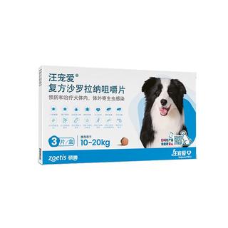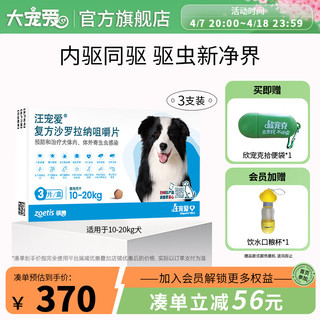汪宠爱 大宠爱犬升级体内外同驱狗狗驱虫复方沙罗拉纳咀嚼片驱除蜱虫跳蚤蛔虫 【季度装】10-20kg 中型犬3片/盒