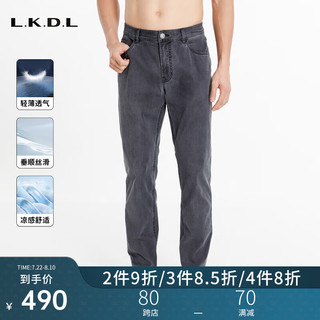 LKDL下半身【凉感牛仔裤不易变形】夏季轻奢品牌柔软耐磨弹力牛仔裤男 中灰色 37