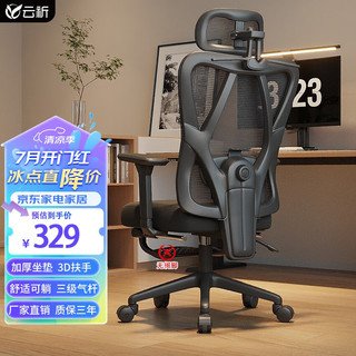 云祈电脑椅人体工学椅午休可躺舒适久坐家用办公电竞椅子转椅 午夜黑Ⅰ:3D扶手+ 三级杆+ 无搁脚