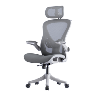 云祈电脑椅舒适久坐护腰午休办公学习宿舍家用人体工学椅转椅电竞椅子 白框灰网+ 三级气杆+ 逍遥+头靠 90-120度(含) 升降扶手