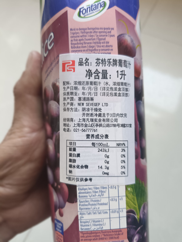 一到年关将至,本地麦德龙总是人山人海,车都停不下,今年早早的去麦德龙备了点年货,当然少不了饮料。可乐、雪碧、果粒橙太普遍了,于是买了一些葡萄汁,塞浦路斯进口,价格不贵,一大瓶十块钱,口味也还行吧。