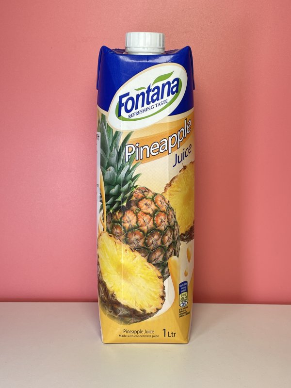 今天会大家分享的这款产品,是我去超市的时候疯狂采购的,当时呢买了很多的产品,其中一种就是这款芬特乐的菠萝。这款菠萝汁采用的是属于纯进口的产品,从他的这个外包装的这个字面就能够看得出来。里面的果汁也是真材实料,而且产品的外部还专门张贴了一张中文的标签。所以说呢,产品的质量和味道都是不错的。如果说你想要健康又要美味,同时在春节这样的全家聚会的过程当中想要合适的一个饮料的话,而这款菠萝只又新鲜又美味,还是比较适合的。