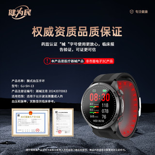 健为民医疗级别气囊式无创血糖血压监测手表测血脂尿酸血氧心率智能健康运动老人免扎针一体机通话手表环 【GJ-SH-13圆形】医疗级高精准动态检测