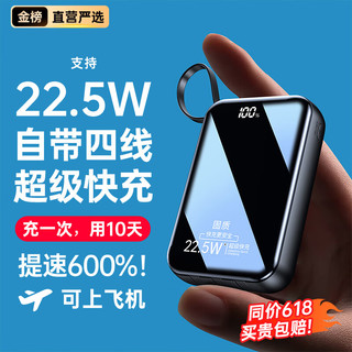固质有品【22.5W超级快充丨可上飞机】20000毫安时自带线小巧便携移动电源适用苹果华为小米大容量 尊享版:1万毫安+超级快充+优质电芯+提速600% 【全国当日/次日达】欧盟电芯丨升级主板