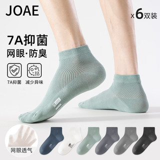 JOAE【网眼夏季款】袜子男士纯棉7A抗菌新疆棉透气防臭抗起球短袜6双