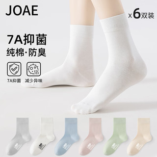 JOAE【7A抑菌新疆棉】100%纯棉6双袜子女士秋冬透气防臭吸汗中筒袜 草绿+天蓝+豆沙+白+杏+灰