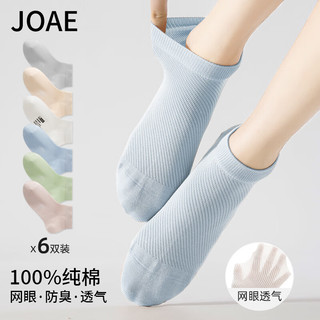 JOAE【网眼夏季款】袜子女士纯棉7A抗菌新疆棉透气抗起球短袜6双混色 草绿+天蓝+豆沙+白+杏+灰