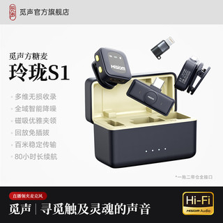 觅声玲珑方糖麦直播麦克风夹领式降噪录音设备主播户外vlog短视频拍摄K歌手机无线领夹收音麦 藏蓝【双人配充电仓】全接口-无损收录-稳定传输