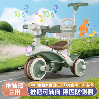 爱贝岙儿童三轮车1-3岁脚踏车宝宝遛娃婴儿推车溜溜车三合一手推车 【护栏+靠背+转向手推杆】