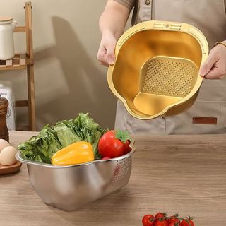 北萌沥水食品级厨房淘米304不锈钢家用水盆多功能细孔洗菜洗米 24cm