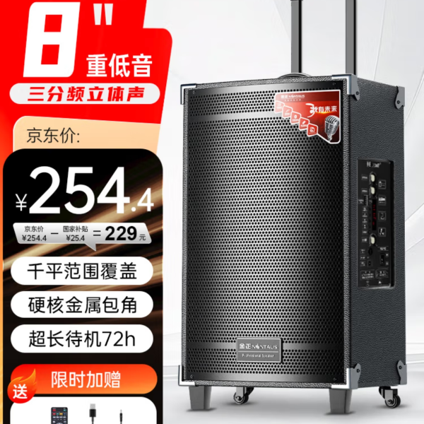#潜力作者激励计划 金正N12-20是8吋广场舞音响,具备大音量、大功率特点,采用拉杆式设计,方便户外携带。支持蓝牙连接,可用于K歌,内置锂电池,续航能力较好,适合广场舞爱好者及户外娱乐使用。