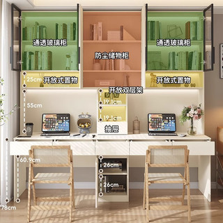 岩氏木业欧松板书桌书架一体双人奶油风家用儿童卧室写字台学习桌 2.3长*2.1高(六门双人书桌)