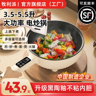 牧利派电炒锅炒菜电煮锅电火锅多功能家用电热锅多用途锅不粘锅一锅多用蒸煮煎炒一体锅小家电料理锅插电 米白色-电炒锅多功能用 不粘锅 特厚款 3.5升 手动款 1-3人用