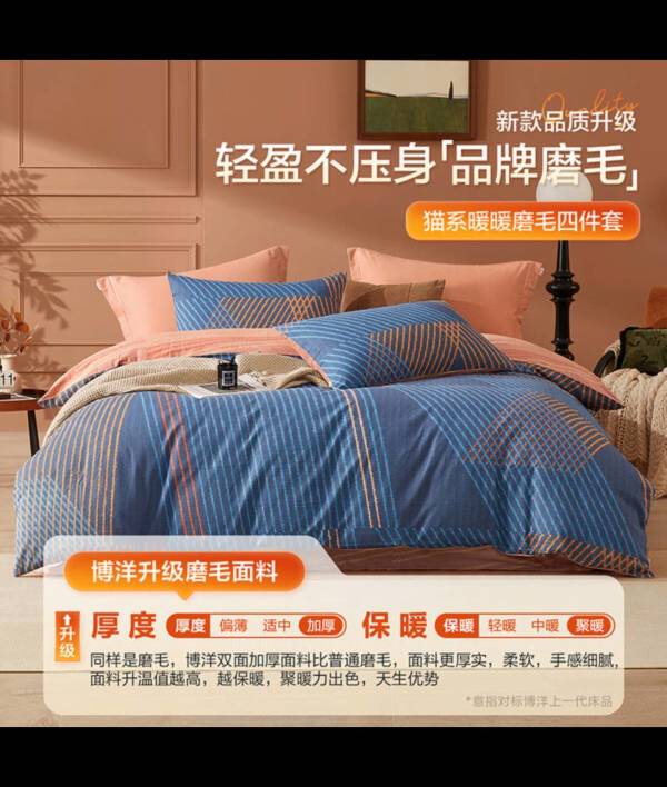 #潜力作者激励计划 冬日严寒,一套好的床品太重要了!我入手的博洋家纺全棉磨毛四件套,成了我的冬日暖心好物。180cm大尺寸,铺在大床上平整又大气。曲线格调设计简约又时尚,为卧室增添温馨氛围。全棉磨毛材质,触感柔软亲肤,细密的绒毛好似小太阳,锁住温暖。躺上去,暖意瞬间包裹全身,仿佛被温柔拥抱。而且它透气性佳,一整晚睡下来,被窝依旧干爽舒适。有了它,每晚都能在温暖中安然入睡,做着甜甜的美梦。如果你也想在冬日拥有温暖好眠,不妨试试这套四件套!