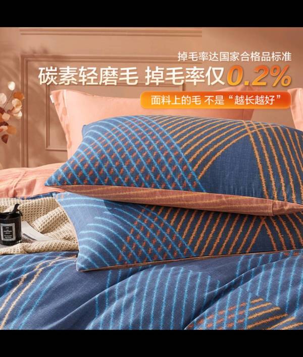 - 面料优质:采用100%精梳棉,布面细腻平整,纤维紧密有序,光泽柔和温润,柔软蓬松,吸湿透气性佳,夏天不闷汗,秋冬搭配暖气也不会产生静电粘腻感。- 工艺精湛:被套采用全包边设计,车线工整细密,走线流畅无线头,反复机洗不易变形、脱线。角落有绑带设计,可固定被芯。床单尺寸合理,1.8米床规格的床单垂下后两侧各有30余厘米余量,包裹床垫后边缘服帖。