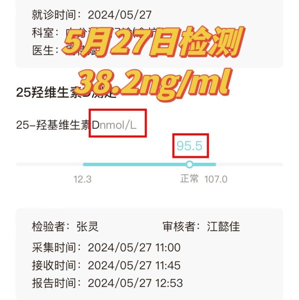 二🐏之后身体一直出问题,先是人生头一次开始过敏,猫狗冷热花粉各种过敏且非常严重。其次是经常感冒,一年能有五六次。最后是精力完全恢复不上来,天天都很累很down。后来查了不少资料,开始补维D。5月27日先去医院查了维D数值95.5mol/L折合38.2ng/ml,正常范围内中等偏下。找了now的一款5000单位维D同时含180mcg维K2的每天一粒,同时配合镁剂每天早晚各一粒。到现在吃了刚好三个月,想看看维D补的情况如何了。计划着如果到了60ng/ml以上就可以换成1000或者2000单位的维D吃了。结果检测下来如图一,才从38.2补到40.93ng/ml。这三个月每天至少一粒5000单位的维D,期间无症状🐏过一次,那一周加到每天2粒10000单位。甘氨酸镁镁每天共200mg,分成早晚两次吃。结果三个月下来才增加了2.73ng/ml。电解质六项也查了,血钙正常值,血镁值在正常范围偏低限。三个月下来直接感受:三🐏无症状,过敏症状几乎消退(停过敏💊了),白天精神挺好,晚上深睡时间平均增加半小时左右,腰酸问题缓解。后续打算接着按这个方案吃,三个月后再复查比较下。