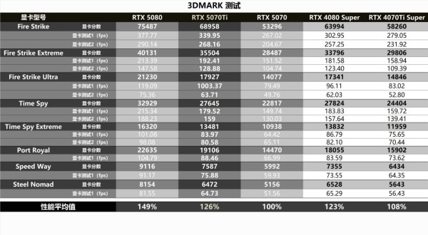 测试的显卡是索泰RTX 5070Ti XGAMING OC。我的显卡评测,肯定是要对比的,加入同代的RTX5080和RTX5070,更能看清RTX5070Ti的定位;也测试过上代显卡RTX4070Ti,但数据太过古老了,于是选择了RTX4080 Super 和4070TiSuper ,它们都是近期测试过的,这样下面对比测试就一共有5张显卡了!各项对比都在表里,感兴趣可以仔细看下,我直接来说结论了:😏相比192bit &12GB显存的5070,在4k分辨率下,显然5070Ti的表现要更好,而在2k分辨率下对平台的依赖性也没有5080来的那么大。5070Ti和4080super基本是同档的,但毕竟多了一个DLSS4。相比4070Tisuper,5070Ti领先了不到20%,那么相比4070Ti的性能提升基本就是20%~30%了,这种提升幅度还是可以的。🤔最后谈谈性价比:5060较4060提升~25%,小高4060ti一丢丢,价格和4060ti也差不多,算是送你了个DLSS4。5060Ti较4060ti提升~20%+,超频后(+~10%)才能赶上4070,5060Ti 8G价格(~3000)和4070差不多,5060Ti 16G价格(~3500)高于4070。5070较4070提升~25%,性能要好于4070ti好一点(达不到4070tis),5070价格(~4500)和4070ti差不多。5070ti较4070ti提升~25%+,基本和4080 super一致,5070ti价格(6500~7000)要比4080 super便宜1000多块了。5080较4080 ~20%,要超频(+~10%)才能赶上4090D,5080价格(8500~9000)要比4090D便宜5000~6000块了。这么看5080的性价比最高,但4090D贵在24GB的显存。所以排除这一个特例,RTX50显卡中还是5070Ti 的性价比最高。当然我一直认为性价比没那么重要,最后还是看应用和需求,比如想玩点游戏,又想有点生产力,可能5060Ti 16G就满足你了,也不用花更多的钱非要上5070 Ti 。#科技运动大玩家 #达人激励计划 #深度横评全解析 #数码好物种草团 #男人梦想的数码装备