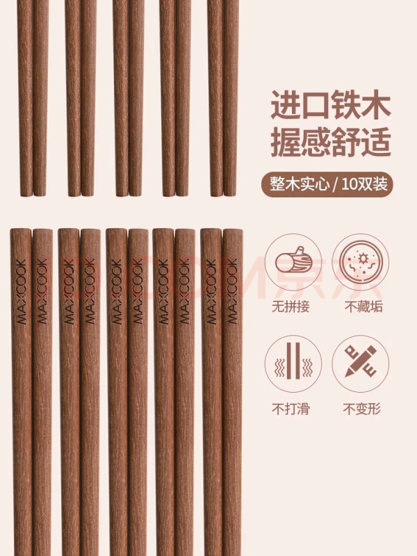 #晒双11厨房好物 美厨铁木筷子:厨房里的坚实伙伴十年如一日地陪伴,见证每个温馨的用餐时光美厨这款铁木筷子以其坚实耐用的特性,成为了我家厨房使用率最高的餐具。铁木材质密度高,不易吸水变形,长期使用也不会发霉开裂。表面保留天然木纹,握在手中沉稳不打滑,夹取食物时尤其得力。好用的筷子无需过多修饰——它就这样安静地待在筷笼里,日复一日地承担着传递美味的使命,成为家庭生活中最可靠的存在。