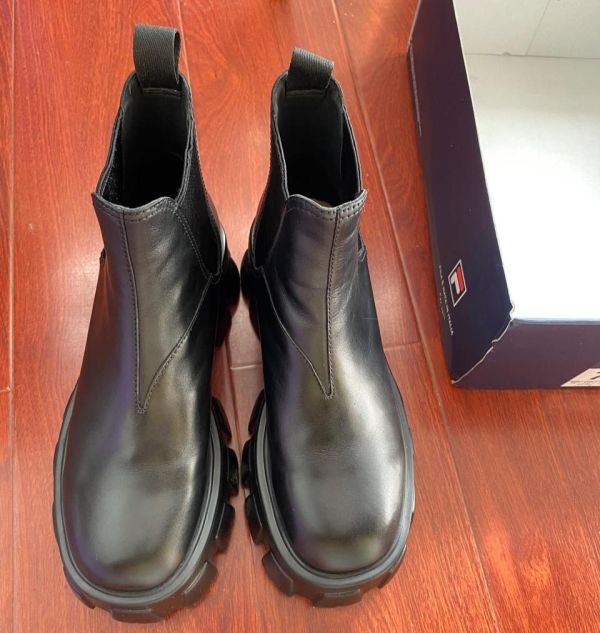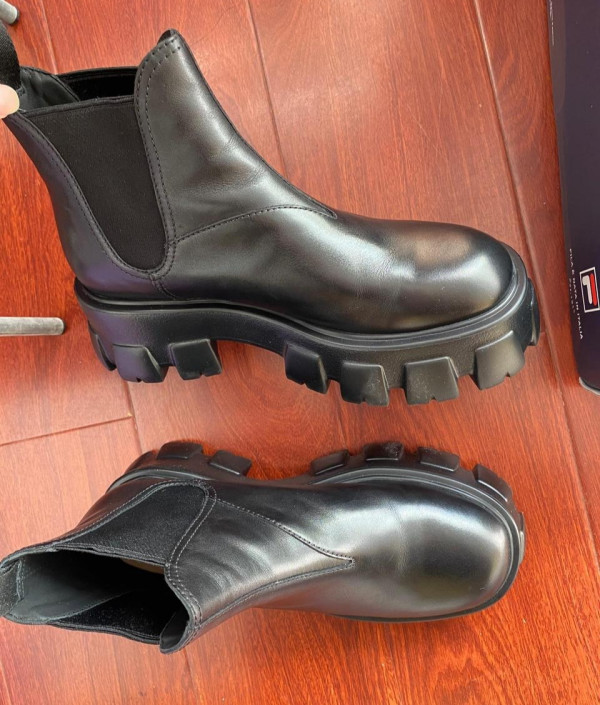 穿上秒变腿精的真皮厚底短靴!这款短靴采用的是方头设计穿起来会在视觉效果上有一定程度显脚小的效果哦加上松糕厚底的设计不仅可以暗搓搓的增高还可以拉长身体比例让整体显得更协调噢