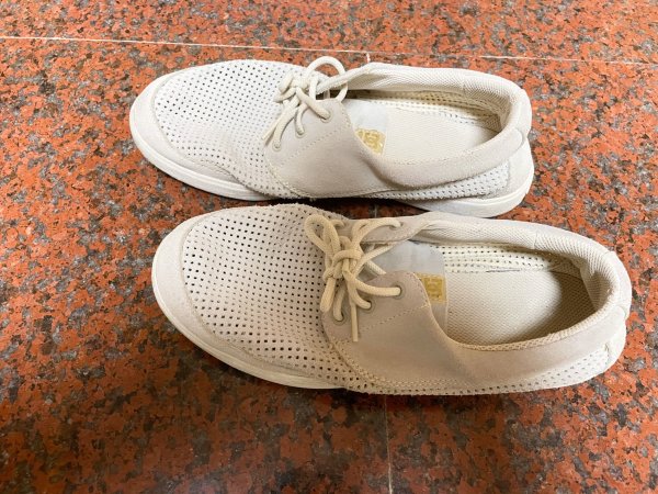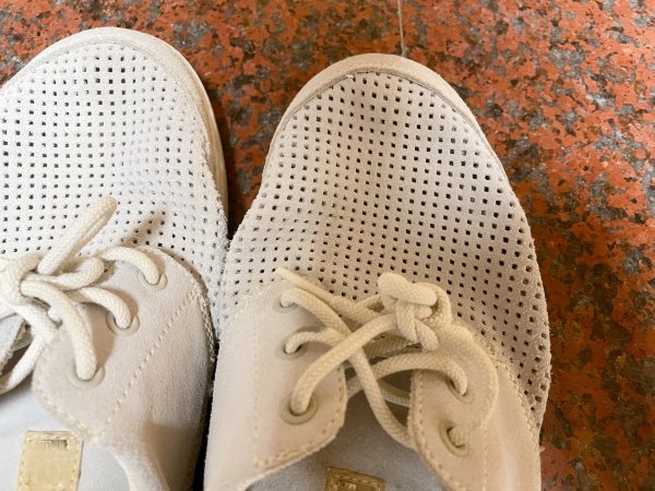 很美式的风格,虽然看起来踏踏的,但是上脚很好看。低帮款,很舒适,里面不用穿袜子,一脚蹬就行,鞋面的孔除了装饰用,还很透气