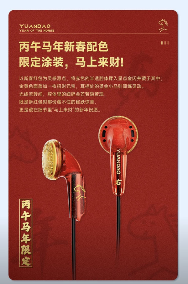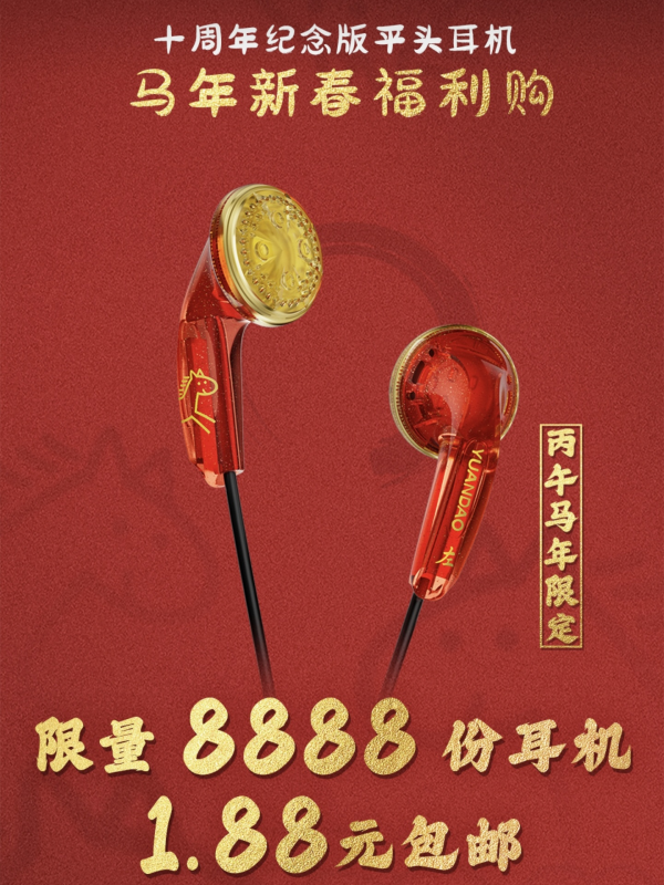 喜欢音乐的同学对于原道耳机应该熟悉不过了,流传一句非常经典的话“早知道还得是原道”。还有一张触发悔恨之泪的图,在网上广为流传。不知不觉原道居然10年了,原道发布了10周年纪念版,限量8888份,2月16日20:00发售,只需要1.88元还包邮。初中学生时代的第一个耳机就是买的原道的,那时候在校门口的数码店买的,只要9.9元,对于初中生的我来说也是一笔大开支了,几天的早餐钱。用了2年对于我来说还是比较满意,不说什么音质,就是没有底噪这一条已经非常好评了,最后戴在耳朵上忘记了,然后突然走动把耳机给扯坏了。虽然后面沉迷游戏用了大耳罩的游戏耳机,但是原道给我的印象依然非常好。今年的限定款有2种颜色,一款是喜庆的红色,另外一款是静谧深海蓝色。配置还算不错,和价格比还是有性价比的15.4mm大尺寸动圈单元。N52钕铁硼强磁,高品质PET振膜。毕竟只要1.88元,在15元之内性价比无敌。当然要对标100+的耳机就不要幻想了。这一次纪念版耳机还是复古的平头塞,对于习惯了入耳式耳机的人来说肯定有些不足,而且还是有线耳机,现在的手机要找一台带3.5耳机孔的是真的很难,除非是以前的老手机,所以买来更多的是用于收藏,我肯定会去买的,至于能不能抢的到就靠手气了。这耳机应该不会有人疯狂囤货吧。#年货送礼体面学