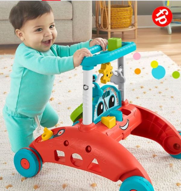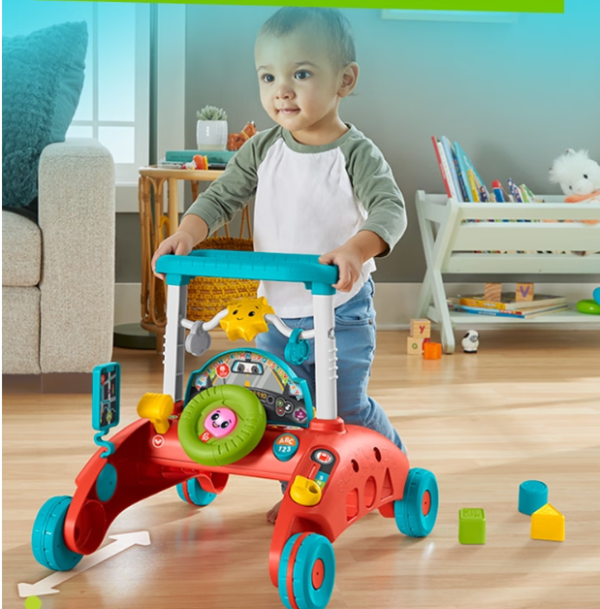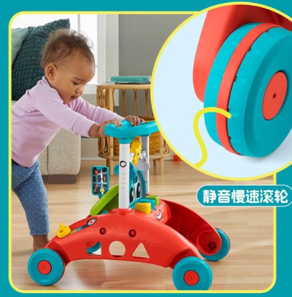 #松弛感带娃 费雪(Fisher-Price)作为美国美泰公司旗下核心婴童品牌,拥有90余年历史,以“玩中学”理念著称,是全球婴幼儿玩具领域的标杆。HJP83多功能双面助步车是其经典学步车系列的代表作,专为9-36个月婴幼儿设计,融合运动发展、认知启蒙与感官刺激功能,通过ASTM F963、EN71等国际安全认证,是欧美儿科医生推荐的运动发展辅助工具。 **核心功能解析** • **双面互动面板**:正面为声光早教模块,含数字按键、形状配对等5种互动游戏,刺激听觉与触觉发育;背面为情景模拟面板,配备可旋转齿轮、滑动开关等精细动作训练组件。 • **渐进式学步设计**:可调节车速控制系统(0.5-1.2m/s),初期提供稳固支撑,后期逐步减少阻力,培养平衡能力。底部加宽防侧翻底盘(倾角≤15°),符合人体工学推行高度(45-50cm)。 • **多阶段适用性**:坐姿阶段可作为活动中心,扶站期变身助步车,独立行走后转换为玩具推车,使用周期长达18个月。 **发展心理学依据** 根据皮亚杰认知发展理论,该产品精准匹配感知运动阶段(0-2岁)需求: - 移动功能促进空间认知与深度知觉发展 - 因果互动装置(如按键发声)强化客体永久性概念 - 双侧肢体交替运动刺激大脑胼胝体发育