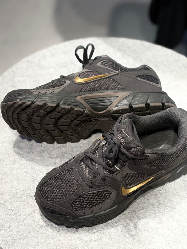 #潜力作者激励计划 秋冬离不开老爹鞋的穿搭党,Nike这款黑武士鎏金款直接让我封神!水泥黑鞋身质感拉满,低调中暗藏鎏金细节,光线下泛着细腻光泽,完全摆脱了纯黑鞋的沉闷感,酷飒又不失精致。 上脚惊喜感爆棚,鞋型宽松却不臃肿,悄悄修饰腿型还显高,我165cm穿它秒变“小长腿”。鞋底软弹有支撑,通勤暴走一万步或周末逛街,脚底都没有酸胀感,比普通老爹鞋更舒适。 最戳我的是百搭属性,搭配牛仔裤、运动裤、甚至毛呢裙都毫无违和感,休闲风、酷飒风轻松切换。耐脏程度也在线,秋冬雨水多也不怕弄脏,擦一擦就干净。这双鞋真的承包了我整个秋冬的穿搭,穿出门被问N次链接,妥妥的闭眼冲不踩雷款!