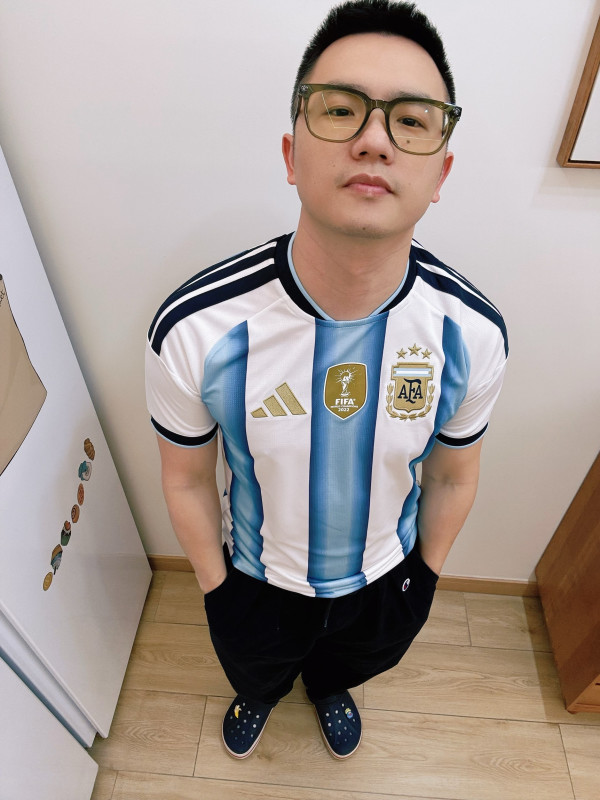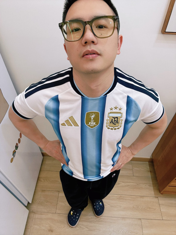 #解锁球衣潮搭 #球衣的100种穿法 #足球衣的100种穿法 #解锁球衣穿搭 #看看你的百搭球衣 adidas 轻薄顺滑,清风速干面料阿根廷国家队世界杯主场球衣荣耀3星⭐蓝白三条纹金色logo卫冕冠军🏆盾牌🛡️FIFA球迷1893,清爽配色肩上3道杠细节不错,圆领罗纹袖口170,145斤M码常规版型,合身显肌肉穿着这件球衣走在街上被很多人问链接啦日常配深色运动裤+复古球鞋观赛时又帅又舒服
