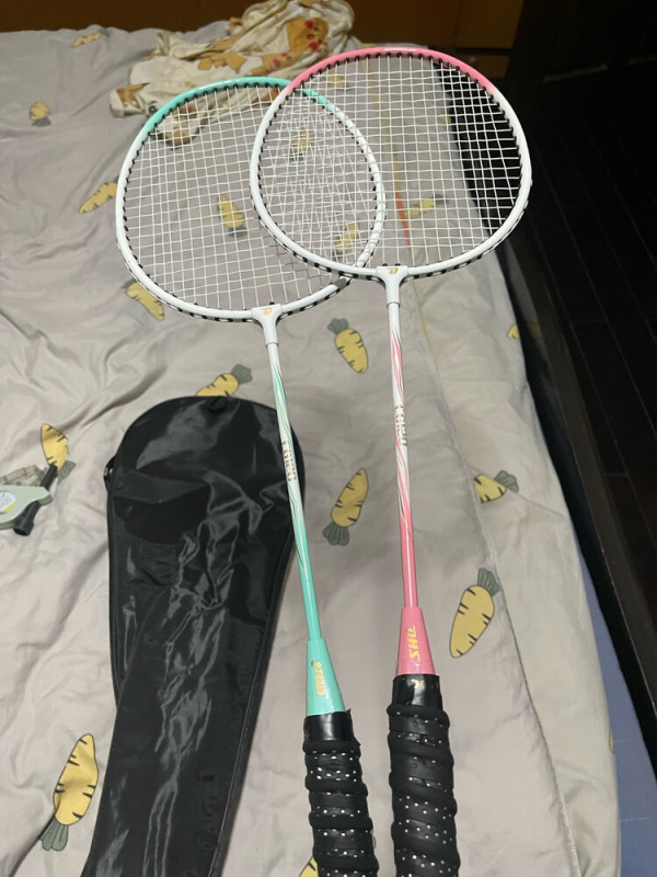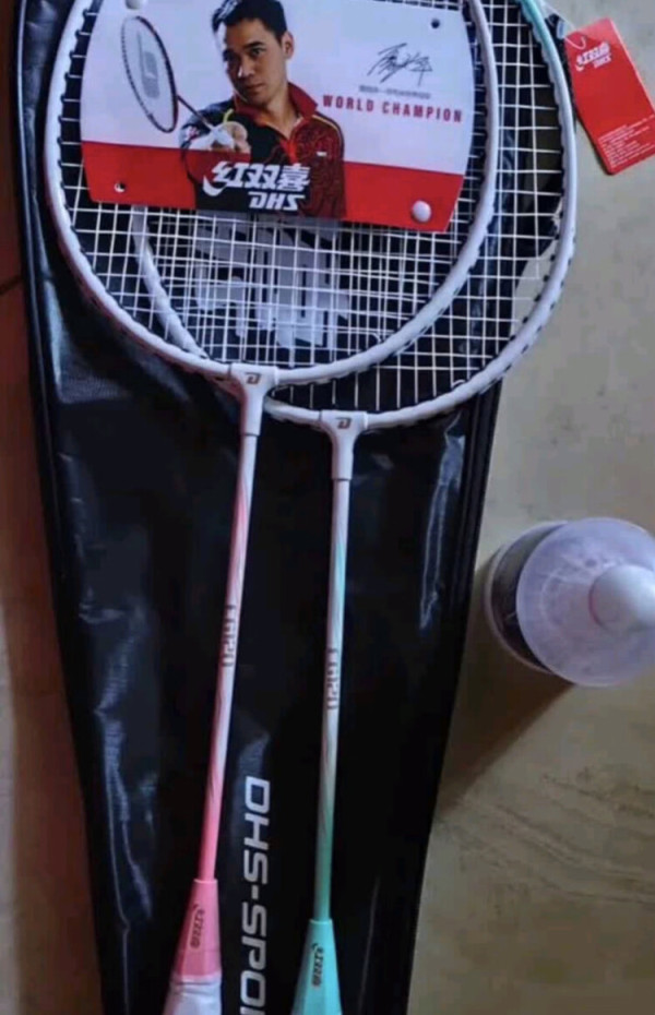 红双喜羽毛球拍套装,对拍,复合碳素,已穿线含手胶!