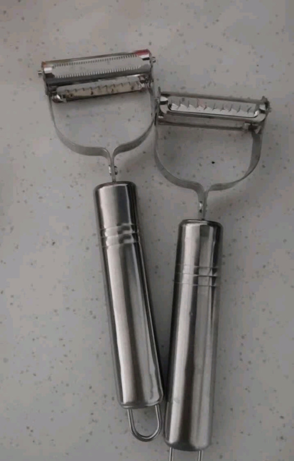 #厨房用品好物种草 最近入手的这款多功能削皮刀,简直是厨房刚需党的福音!拜格这款双面削皮器,不锈钢材质锋利耐用,拿到手就知道质感在线。一面是削皮刃,削土豆、苹果、黄瓜时超顺滑,薄厚均匀不浪费食材,连较硬的南瓜皮都能轻松削掉,不费力气。另一面是刨丝刃,擦胡萝卜丝、土豆丝又快又均匀,再也不用手切得粗细不一,做饭效率直接翻倍。握柄设计贴合手型,防滑不硌手,长时间用也不累。体积小巧不占地,清洗起来一冲就干净,还能挂起来收纳,省空间又卫生。自从有了它,处理水果蔬菜再也不用费劲儿,不管是日常炒菜还是做凉拌菜都超方便,实用性拉满,闭眼入不踩雷!