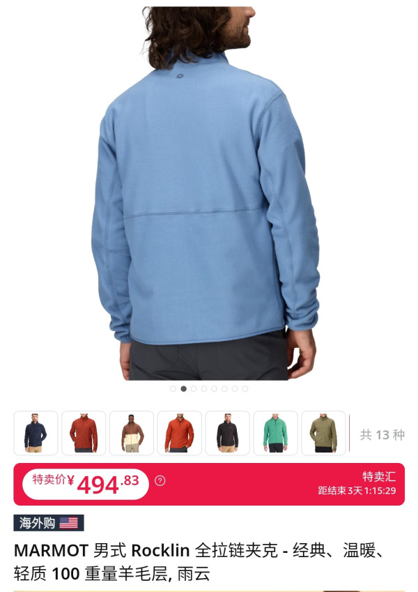 不到500元入手Marmot户外“软黄金”!13色可选,轻暖羊毛夹克限时3天抄底!秋冬季户外出行,一件能抗风、轻盈又经典的夹克才是“硬通货”!Marmot男式Rocklin全拉链夹克,简直是户外达人与通勤党双双心动的宝藏单品——✅ 100重量羊毛层,轻质却锁住温度,秋冬微寒天气一件搞定,行动自如不怕臃肿!✅ 立领设计+简洁剪裁,防风利落,搭配深色长裤瞬间提升户外机能感,城市穿也毫不违和。✅ 13种颜色任选!从沉稳黑、丛林绿到亮眼红色,低调or出彩都由你定义。✅ 海外购正品保障,经典土拨鼠Logo,品质细节在线,户外活动、旅行徒步、日常休闲全适配。⏰ 限时特卖警报!特卖价仅¥494.83!打破海外户外大牌高价门槛,性价比直接拉满!⏳ 距结束仅剩 3天1小时16分,手慢秒不到!🔥 点击入手,用一杯潮牌T恤的钱,换一件能穿多年的羊毛夹克。轻暖随行,这个秋冬就靠它稳赢户外!Marmot经典夹克 #户外羊毛夹克 #秋冬轻暖穿搭 #限时特卖