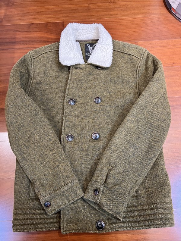 以前,上大学那会,买的思莱德,记得之前,思莱德啦,杰克琼斯啦,都是学生们很喜欢的品牌。这件棉服,设计上看,还是不错的,颜色虽然是绿色,但是上身效果还是不错的。内里是羊羔毛的设计,所以保暖性还是很好的。扣子是做旧工艺,刚开始我还以为是掉漆了,看了剩下的几个都是这样的。年轻人穿穿还是很不错的。