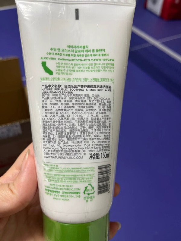 #护肤美妆抄底好物 自然乐园芦荟泡沫洗面奶,养肤级洁面的“天然优选” 新入的Nature Republic自然乐园芦荟舒缓保湿泡沫洁面乳,用了几次就忍不住想夸! 它的包装很有辨识度,白绿主色调搭配加州芦荟的标识,一看就透着“天然感”。挤一点在手上,轻轻一搓就变出绵密的泡沫,像云朵一样软乎乎的,敷在脸上清洁时特别舒服,能把一天的油光和灰尘都带走。 最让我惊喜的是它的养肤力,里面的加州芦荟成分可不是噱头,洗完脸后肌肤是那种润润的状态,完全没有紧绷感。我前段时间晒后泛红,用它洁面后舒缓效果很明显。不管是日常通勤后清洁,还是偶尔淡妆卸妆(淡妆哦),它都能hold住,清洁力和温和度平衡得绝绝子。 150ml的量很耐用,每次用一点就够,性价比超高。不管你是追求天然成分的护肤党,还是想找一支清洁同时能舒缓的洁面,选它准没错,这波入手太值了~