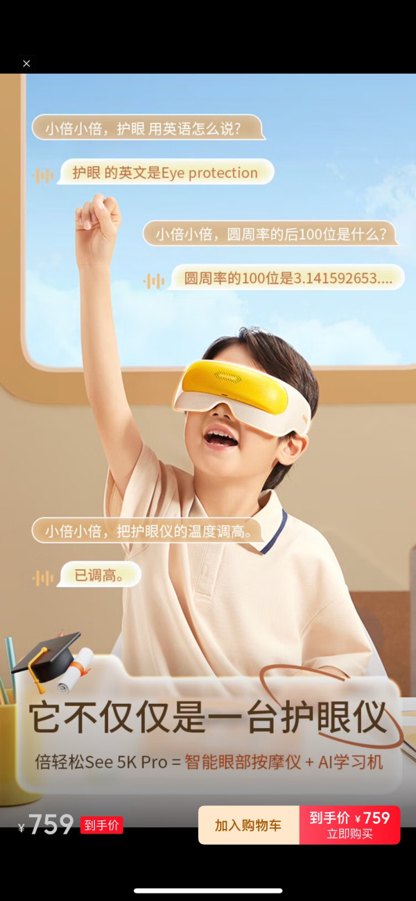 #放心消费科普大赛 #护眼仪与近视防控关系 #儿童护眼仪品牌推荐榜 #放心消费科普大赛 #护眼仪与近视防控关系 #儿童护眼 #儿童护眼新选择 #孩子视力保护神器 #预防近视新利器作为一个6岁娃的妈妈,自从孩子查视力发现眼轴增长偏快,我真的把“护眼”刻进了日常!除了严格控制屏幕时间、保证户外,我也一直在找能辅助放松眼睛的工具,对比了好几款,最终入手了这款倍轻松See5KPro儿童护眼仪,用了一段时间,真心觉得挖到宝了!先说说最打动我的点:它是专门为孩子设计的!很多成人护眼仪尺寸大、力度猛,孩子用着不舒服,这款完全贴合儿童眼周轮廓,不会压眼球、不勒头,我家娃第一次戴就没抗拒。而且它是AI智能语音版,自带“小轻松”语音助手,孩子自己就能用语音控制开关、切换模式,不用喊我帮忙,自主性拉满,再也不用追着喂用了!功能上真的很懂家长需求:核心的气压按摩+热敷,能精准放松眼周睫状肌。孩子上网课、看书、玩积木久了,睫状肌一直处于紧张状态,时间长了就容易近视、眼轴疯长。用它按摩10分钟,温热的蒸汽包裹眼周,气压轻柔按压眼周穴位,孩子说“眼睛像泡在温水里一样舒服”,每次用完都能明显感觉到眼睛不酸了,看远处也更清晰了。而且它有专门的儿童护眼模式,还有睡眠模式,睡前用15分钟,热敷+轻柔按摩,能帮孩子放松助眠,睡得更香,而充足的睡眠也是防控近视的关键!热敷温度是40℃左右的恒温,不会烫眼,孩子用着完全放心。材质也很安心,亲肤蛋白皮内衬,软乎乎的,孩子戴久了也不闷汗,还能拆下来清洗,干净卫生,避免细菌滋生,对敏感肌宝宝也很友好。续航也很顶,充满电能用一周左右,带去爷爷奶奶家、出门旅行都方便,随时随地给眼睛“充个电”。很多家长担心护眼仪是“智商税”,其实它的核心作用是放松睫状肌、缓解视疲劳,从根源上减少近视发生、发展的诱因,配合每天2小时户外、正确用眼习惯,才能真正做好近视防控!这款倍轻松护眼仪,就是帮孩子养成护眼习惯的好帮手,孩子因为语音交互觉得好玩,会主动要求用,再也不用我催着护眼了!现在孩子每天固定用眼后、睡前各用一次,复查视力的时候,眼轴增长速度明显放缓了,老母亲真的太欣慰了!孙颖莎同款果然靠谱,700+的价格,给孩子的视力健康投资,真的太值了!家有学龄娃、近视防控焦虑的宝妈,闭眼入就对了!#宝宝视力保护 #视力保护新趋势