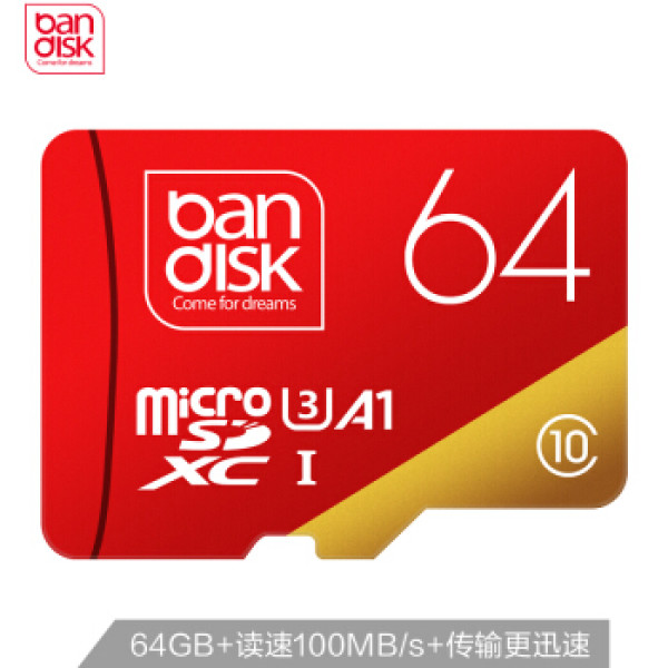 麦盘(bandisk)64GB TF(MicroSD)存储卡 U1 C10 A1 PRO版 读速100MB/s 手机行车记录仪监控高速内存卡