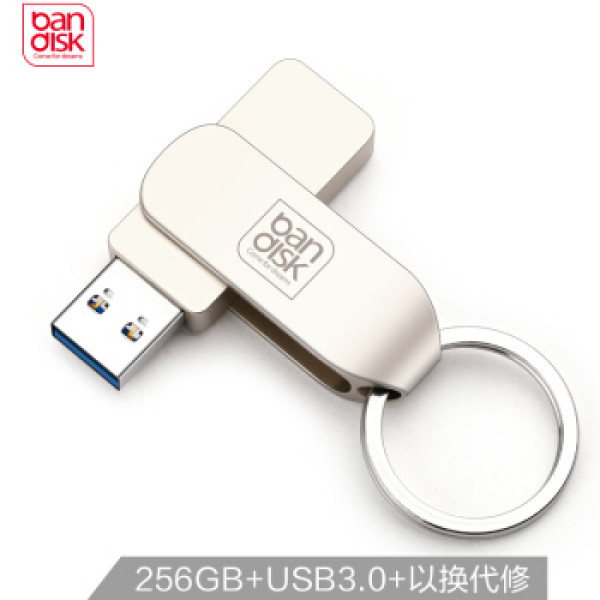 麦盘(bandisk)256GB USB3.0 U盘 PRO2高速版 亮银色 全金属电脑车载两用优盘 360°旋转设计 大钢环 更便携
