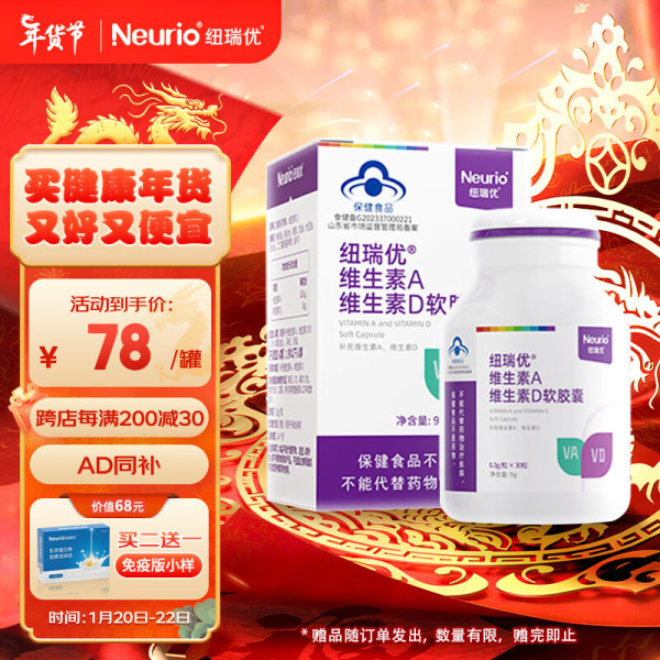 纽瑞优neurio维生素A维生素D软胶囊宝宝儿童成人乳母补充维生素营养软胶囊30粒