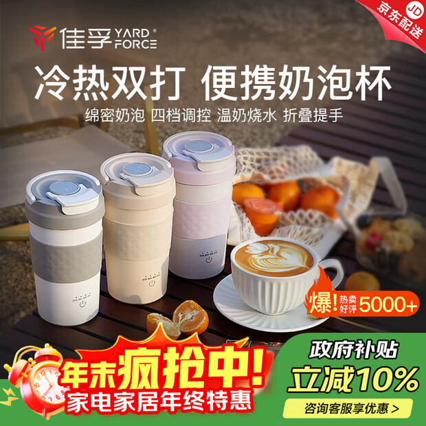 佳孚 YARDFORCE 电热烧水杯壶便携旅行咖啡搅拌电动奶泡机加热杯