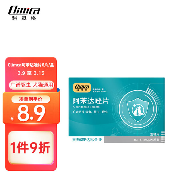 Climca 科灵格小型犬猫用体内驱虫药阿苯达唑片整盒6片幼犬泰迪狗打虫药
