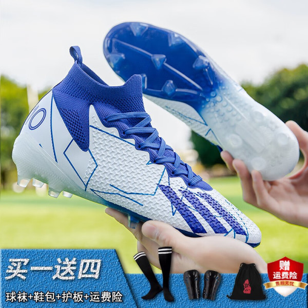 迪芙倪足球鞋男碎钉透气鸳鸯儿童足球鞋男女高帮AG足球鞋碎钉成人训练鞋 白月碎钉 39