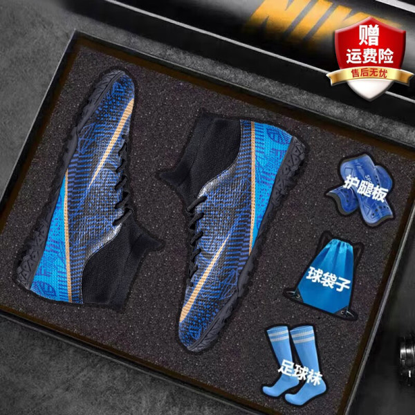 QDRUIN高帮足球鞋梅西猎鹰男女TF碎钉AG长钉学生儿童比赛人草训练球鞋 2398黑蓝碎钉 33标准运动鞋码