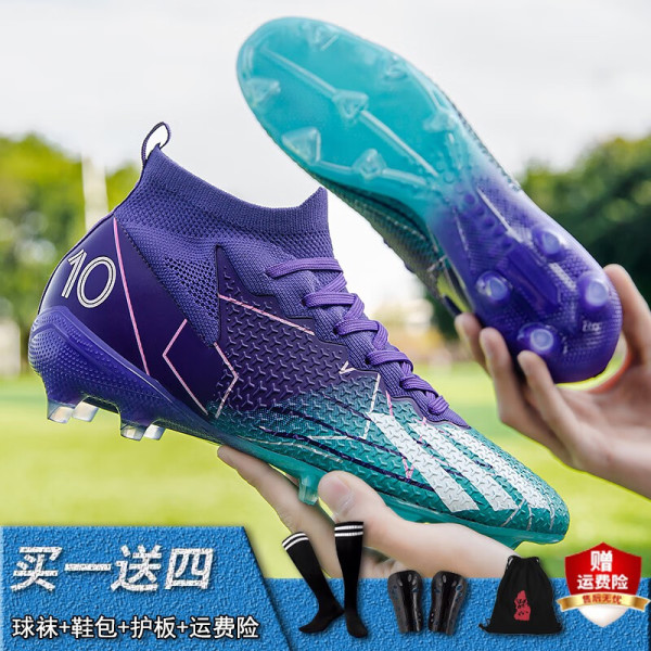 QDRUIN高帮足球鞋梅西猎鹰男女TF碎钉AG长钉学生儿童比赛人草训练球鞋 AK47月紫长钉 42标准运动鞋码