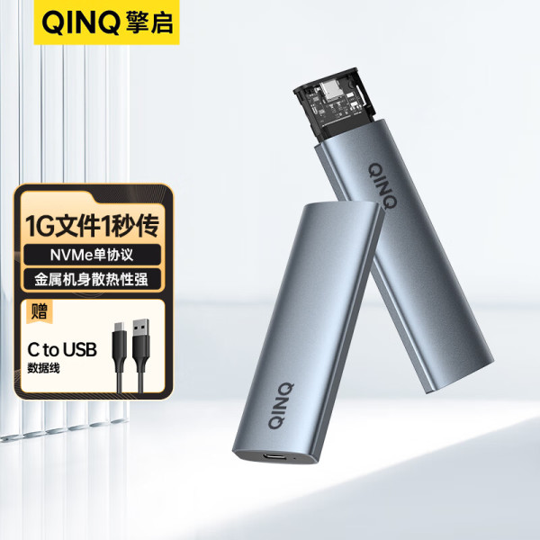 擎启 QlNQ M2固态硬盘盒NVME协议笔记本台式机SSD移动硬盘壳Type c USB3.2金属片散热M.2